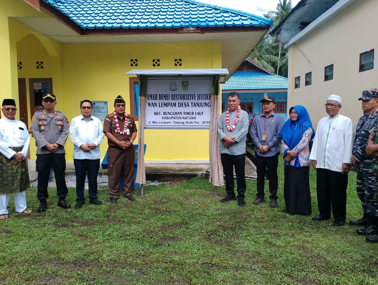 Ketua Pengadilan Negeri Ranai Menghadiri Acara Peresmian ''Umah Demei Restorative Justice Wan Lempam Desa Tanjung'' Kecamatan Bunguran Timur Laut